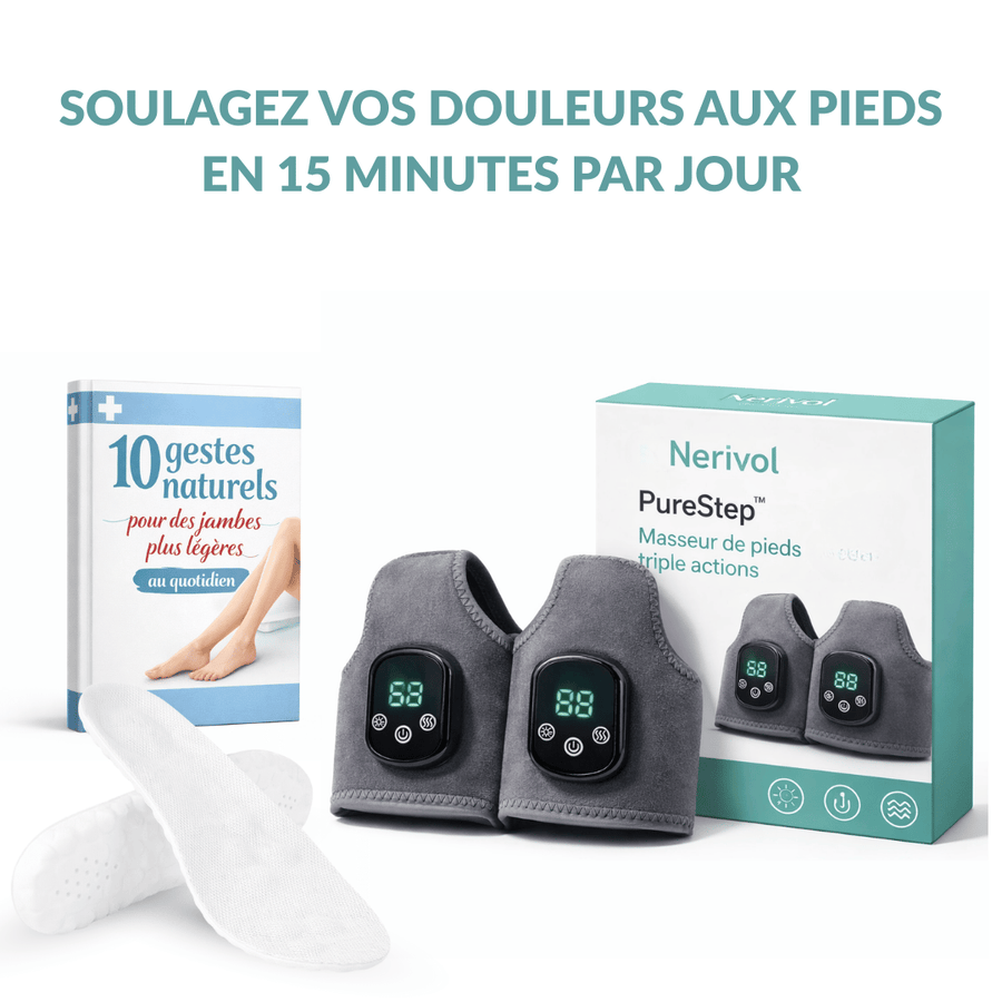 C’est à ce moment-là que peuvent apparaître la lourdeur, les gonflements, les brûlures, les picotements, l’engourdissement ou cette douleur vive sous le pied, souvent au premier pas. Autrement dit, vos pieds n’arrivent plus à se relâcher, à s’adapter et à se réguler correctement.